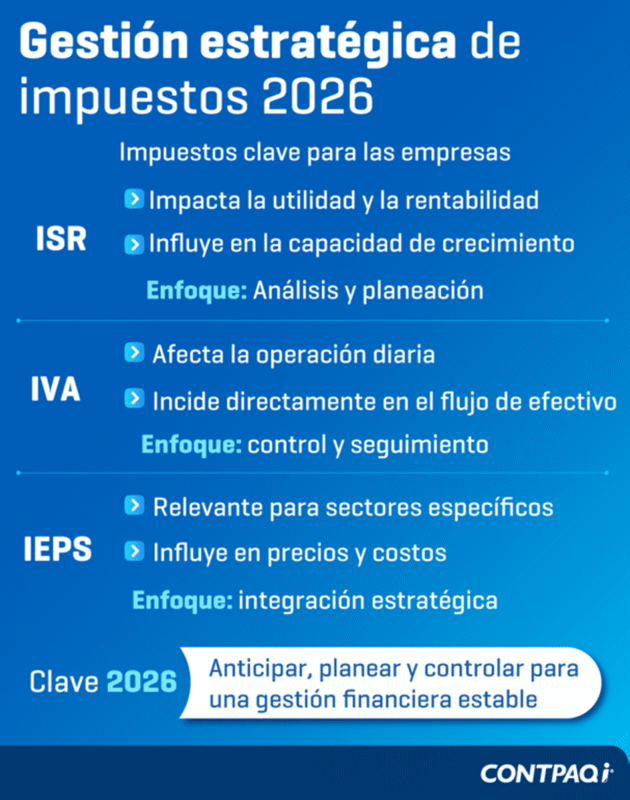 El objetivo no es solo reconocer estos impuestos, sino analizar su comportamiento histórico y su relación con la operación diaria del negocio. Al hacerlo, la empresa puede anticipar impactos financieros, evitar decisiones reactivas y diseñar estrategias que permitan una mejor administración de recursos, alineando la gestión impositiva con una visión de crecimiento y estabilidad para 2026.